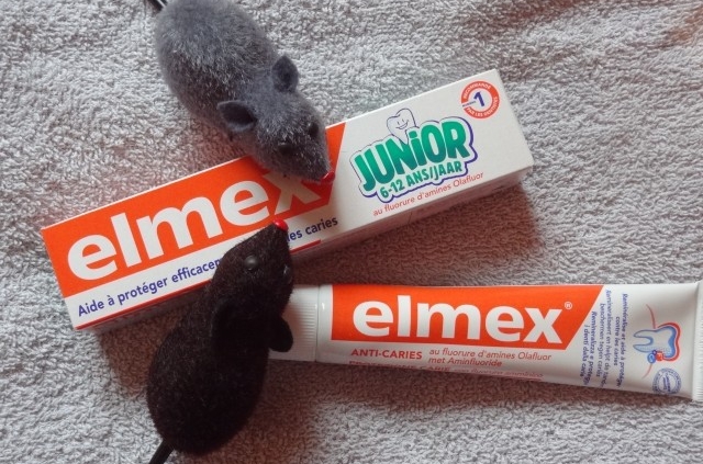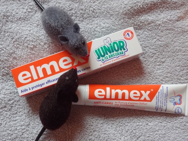 Ce dentifrice N°1 – recommandé par les dentistes nous convient tout à fait. La petite souris qui rôde autour des oreillers des enfants n’a pas de souci à se faire avec Elmex ; elle pourra ranger sans sa boîte à trésors de belles quenottes bien fluorées !