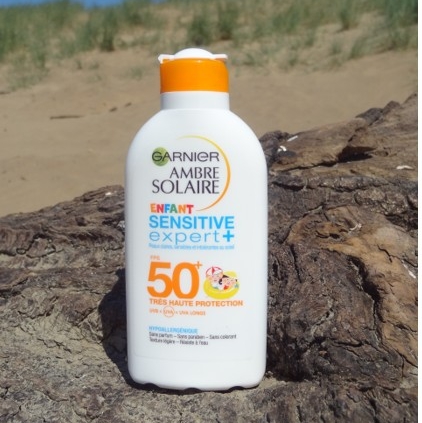 Ambre solaire Garnier Enfant Sensitive expert FPS 50+ : Aqua, glycerin, propylene glycol, diisopropyl sebacate, ethylhexyl salicylate, alcohol denat, butyl methoxydibenzoylmethane, titanium dioxide [nano]/titanium dioxide, octocrylene, isohexadecane, ethyl hexyl triazone, C12-15 alkyl benzoate, aluminum starch octenylsuccinate, stearic acid, triethanolamine, potassium cetyl phosphate, synthetic wax, acrylates/C10-30 alkyl acrylate crosspolymer, aluminum hydroxide, bis-ethylhexyloxyphenol methoxyphenyl triazine, caprylyl glycol, diethylhexyl butamido triazone, dimethicone, disodium EDTA, glyceryl stearate, myristic acid, palmitic acid, PEG-100 stearate, phenoxyethanol, potassium sorbate, terephthalidene dicamphor sulfonic acid, thermus thermophillus ferment, tocopherol, xanthan gum.