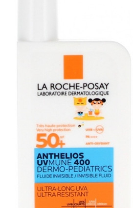 Fluide invisible Anthelios UV-Mune 400 dermo-pediatrics : AQUA / WATER / EAU, BIS-ETHYLHEXYLOXYPHENOL METHOXYPHENYL TRIAZINE, ALCOHOL DENAT., ETHYLHEXYL TRIAZONE, BUTYL METHOXYDIBENZOYLMETHANE, ISOPROPYL PALMITATE, DIISOPROPYL ADIPATE, DICAPRYLYL ETHER, GLYCERIN, PROPANEDIOL, ISOPROPYL MYRISTATE, C12-15 ALKYL BENZOATE, DIISOPROPYL SEBACATE, C12-22 ALKYL ACRYLATE/HYDROXYETHYLACRYLATE COPOLYMER, TOCOPHEROL, METHOXYPROPYLAMINO CYCLOHEXENYLIDENE ETHOXYETHYLCYANOACETATE, PENTYLENE GLYCOL, BUTYROSPERMUM PARKII BUTTER / SHEA BUTTER , ACRYLATES/C10-30 ALKYL ACRYLATE CROSSPOLYMER, CAPRYLYL GLYCOL, CITRIC ACID, DIETHYLAMINO HYDROXYBENZOYL HEXYL BENZOATE, DROMETRIZOLE TRISILOXANE, HYDROXYACETOPHENONE, PHENYLBENZIMIDAZOLE SULFONIC ACID, SODIUM POLYACRYLATE, TRIETHANOLAMINE, TRISODIUM ETHYLENEDIAMINE DISUCCINATE