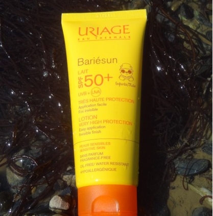 Les laboratoires Uriage misent sur un emballage jaune et sur un ourson (ses oreilles dépassent du bob protecteur) protégée ; par un T-shirt et des lunettes pour séduire le vacancier qui souhaite protéger l’ensemble de sa famille dans les meilleures conditions.