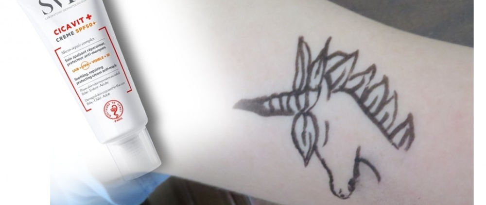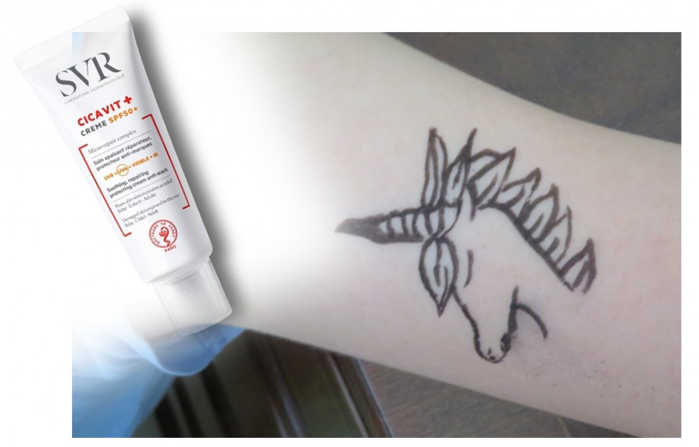 Il y a deux ans, nous avions testé le produit Sun Secure des laboratoires SVR, qui nous avait déçues.1 Nous revenons à la charge cette année, avec un produit « nouveau » (tout ce qui est nouveau mérite notre attention), proposé aux personnes « fraîchement tatouées », mais également aux « peaux abimées exposées au soleil – bébé – enfant – adulte ». Attention aux bébés, qui, on le rappelle une nouvelle fois, ne doivent pas être exposés au soleil.