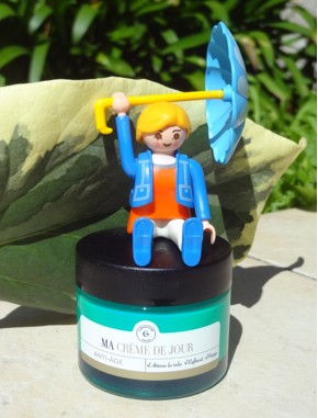 « Ma crème de jour Giphar » est un joli cosmétique. Pot en verre vert, non pas pour la rime, mais pour le côté protecteur vis-à-vis de la lumière. Pot à large ouverture, afin de plonger les doigts dans la crème pour le côté sensoriel, mais pas pour le côté hygiénique. Texture parfaite. Légère odeur de crème solaire qui nous renvoie illico sur notre transat préféré, face à la mer.1