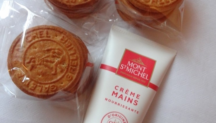 Crème mains nourrissante Mont St Michel : Aqua, helianthus annuus seed oil, behenyl alcohol, ethylhexyl palmitate, glycerin, butyrospermum parkii butter, cetearyl alcohol, hexanediol, chamomilla recutita flower extract, centaurea cyanus flower extract, allantoin, panthenol, parfum, sodium stearyl lactylate, triceteareth-4 phosphate, carbomer, tocopherol, hydrogenated palm glycerides citrate, pantolactone, sodium hydroxide, citronellol, coumarin, geraniol, sodium benzoate, sodium salicylate, hydroxyacetophenone.
