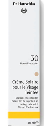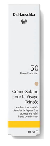 Crème solaire pour le visage teintée SPF 30 Dr Hauschka : Aqua, Caprylic/Capric Triglyceride, Zinc Oxide (Nano), Alcohol, Titanium Dioxide (Nano), Glycerin, Anthyllis Vulneraria Extract, Opuntia Ficus-Indica Stem Extract, Coco-Caprylate/Caprate, Polyglyceryl-3 Polyricinoleate, Prunus Armeniaca Kernel Oil, Olus Oil, Euphorbia Cerifera Cera, Polyhydroxystearic Acid, Calendula Officinalis Flower Extract, Aesculus Hippocastanum Bark Extract, Macadamia Integrifolia Seed Oil, Sesamum Indicum Seed Oil, Simmondsia Chinensis Seed Oil, Triticum Vulgare Germ Oil, Olea Europaea Fruit Oil, Cocos Nucifera Oil, Sucrose Polystearate, Prunus Armeniaca Fruit Extract, Rosa Canina Fruit Extract, Parfum*, Magnesium Sulfate, Sucrose Distearate, Helianthus Annuus Seed Oil, Propolis Cera, Silica, Zinc Stearate, Aluminum Stearate, Alumina, Bentonite, Stearic Acid, CI 77491, CI 77492, CI 77499, Citrus Limon Peel Oil, Citrus Aurantium Bergamia Peel Oil, Santalum Album Oil, Pelargonium Graveolens Flower Oil, Cananga Odorata Oil/Extract, Rose Flower Oil/Extract, Citrus Aurantium Flower Oil, Limonene*, Citral*, Pinene*, Linalool*, Geraniol*, Santalol*, Citronellol*, Linalyl Acetate*, Beta-Caryophyllene*, Geranyl Acetate*, Benzyl Salicylate*, Terpineol*, Coumarin*, Benzyl Benzoate*, Vanillin*, Benzyl Alcohol*, Farnesol*, Eugenol*.
