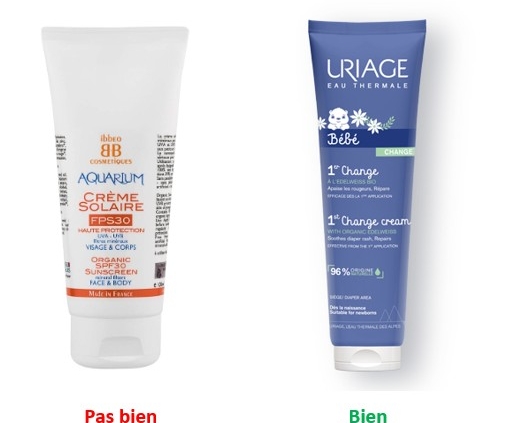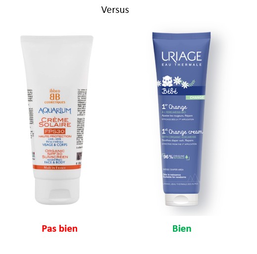 Au jeu du Qui est quoi ? Il est parfois difficile de répondre tant les formules se ressemblent. Ce qui est certain dans le cas présent c’est que la crème solaire en question n’est pas recommandable contrairement à la crème pour le change.