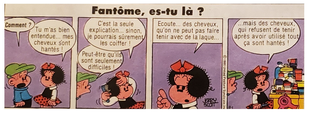 Zoé ne trouve pas le cosmétique adéquat lui permettant de mater une chevelure un peu trop exubérante à son goût.