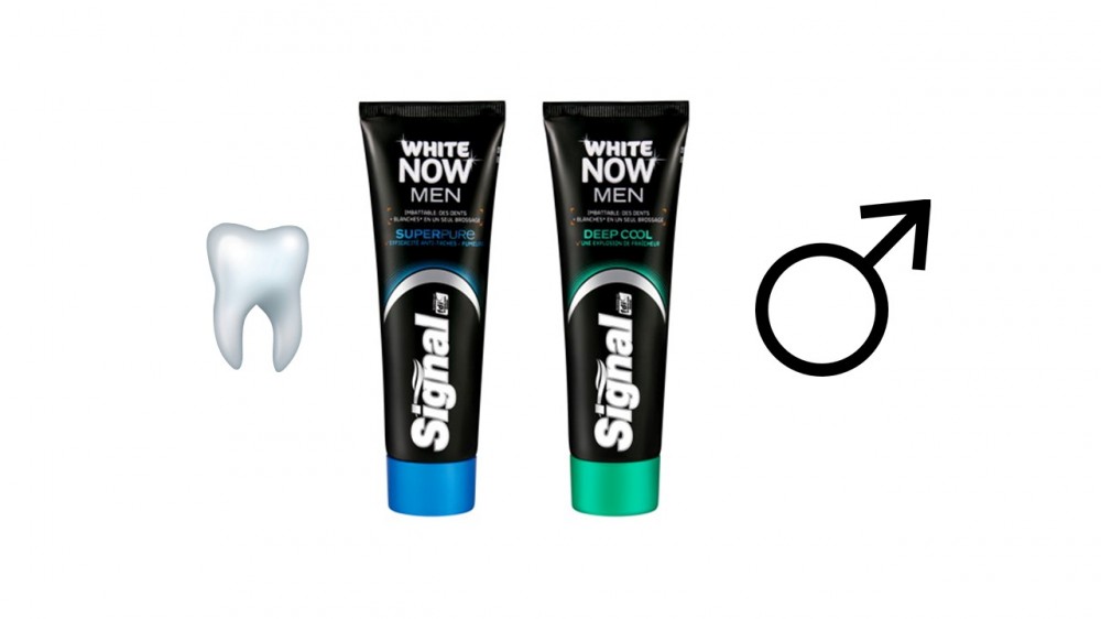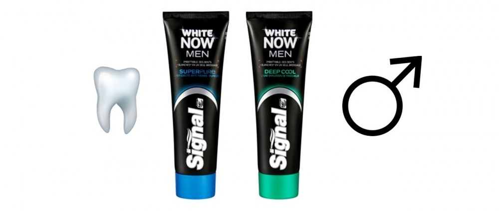 « Le premier dentifrice pour hommes » a été mis sur le marché en 2014, par Signal. Il est, depuis lors, présenté comme un produit révolutionnaire. Sur le site de la marque, Alexandre qui l’a testé nous confie son sentiment : « Un produit top, vraiment adapté aux goûts des hommes ! packaging noir super sympa, et un bon goût mentholé qui laisse l’haleine fraiche toute la matinée. »