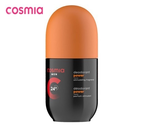 Cosmia men 24h déodorant power roll on – parfum stimulant : Aqua, alcohol denat, PEG-40 hydrogenated castor oil, triethylcitrate, parfum, hydroxyethylcellulose, 1,2 hexanediol, caprylyl gycol, citric acid, sodium hydroxide.