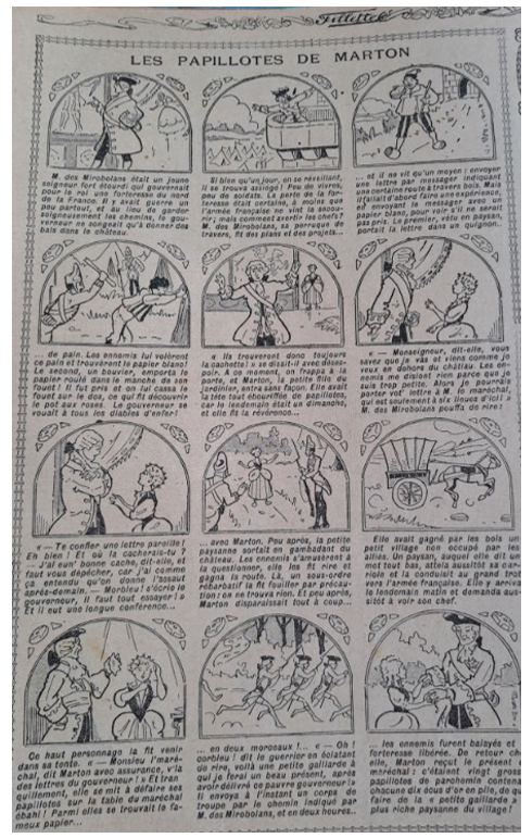 Pour faire passer un message aux troupes françaises, le gouverneur de la forteresse assaillie par l’ennemi, M. des Mirobolans a eu la bonne idée de suivre les conseils de la petite fille du jardinier Marton, parus dans le journal Fillette du 7 juin 1914.