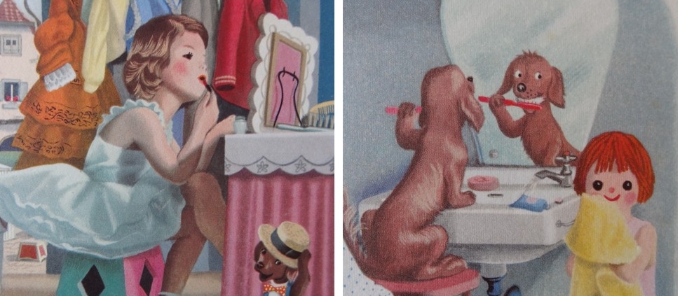 Et pendant que Martine fait disparaitre les dernières traces de son merveilleux rêve sur son visage, Patapouf, qui prend soin de ses dents, les brosse vigoureusement !
