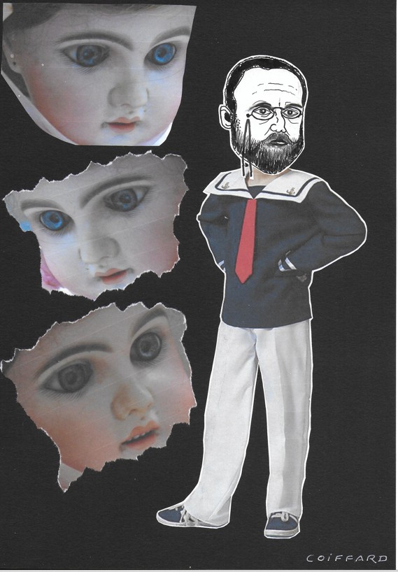 Un grand merci à Jean-Claude A. Coiffard, poète et plasticien, pour ce collage à partir de cette poupée qui nous est si chère !
