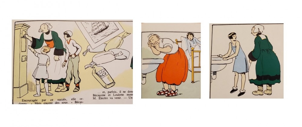 Et au quotidien, en matière de toilette, Bécassine se savonne « la figure avec autant de vigueur que si elle avait voulu en arracher la peau. » pendant que Loulotte, plus précautionneuse, se nettoie le visage avec soin et délicatesse en utilisant un joli savon blanc, opaque.