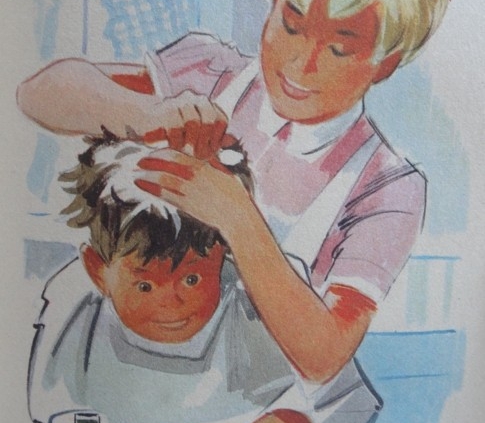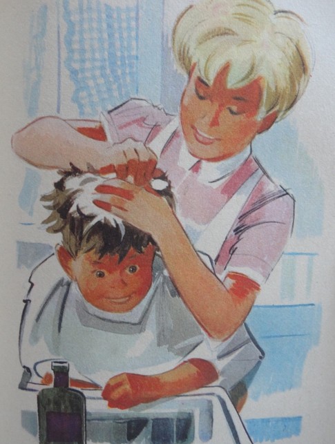 A la recherche du Vieux Ben, les enfants sont envoyés, tout d’abord, chez un coiffeur, nommé Ben lui aussi. « Une grosse moustache » et une bonne calvitie, voilà ce qui caractérise le coiffeur en question qui s’avère ne pas être l’homme recherché. Il s’agit, en revanche, d’un coiffeur malicieux qui se propose de couper les belles nattes de Jenny !