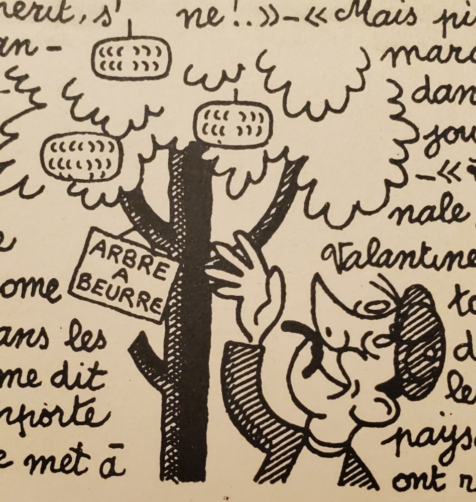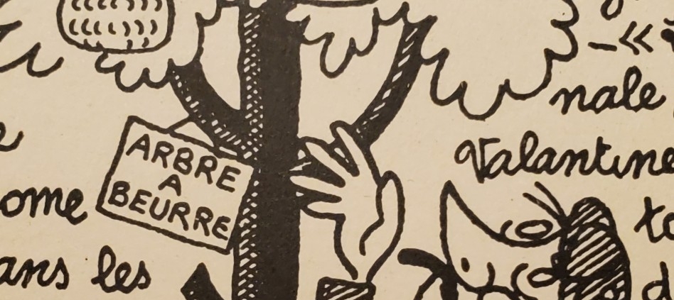C’est du moins ce que l’on retiendra de la chronique d’Henri Bouyer.1 Julien a lu dans le journal une histoire invraisemblable de « beurre de la savonnerit ; 30 tonne du beurre de charité, comme il dise… ». Un beurre de très mauvaise qualité, « inserviable sensémant, qui pousse dans les arbre, dans les colonit !… »