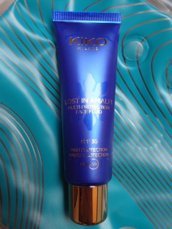 Chez Kiko, le rituel du matin est un peu long. Il faut d’abord hydrater la peau, puis appliquer un « Écran solaire liquide hydratant pour le visage SPF 30 » (attention, nous dit-on, sur le site de la marque ce fluide « ne remplace pas le soin hydratant quotidien »).1 Cherchez l’erreur de l’hydratant qui n’hydrate pas et quand vous l’aurez trouvé riez-en avec nous ! Après ces deux premières phases, passez enfin à l’étape de maquillage ; cet écran (terme à bannir depuis 2006 !) appartient à la gamme « Lost in Amalfi »…