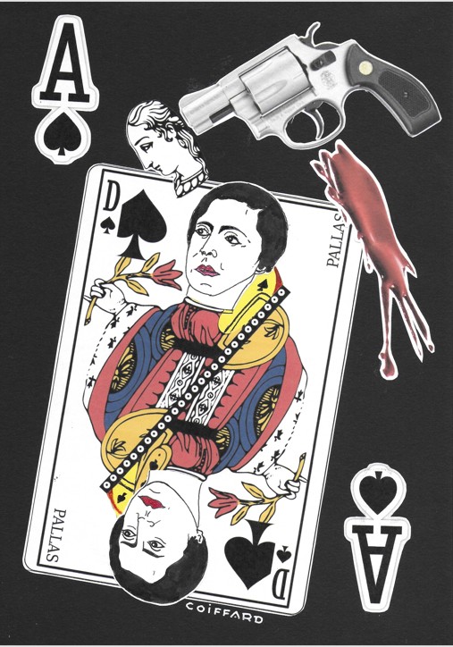 « Les cartes sont disposées en forme de croix sur la table à maquillage, sur une serviette-éponge tachée de fards. « Amour, fortune, succès »… les cartes sont là, à portée de main, qui révèlent un avenir glorieux ou bien misérable. Il y a sûrement un être maléfique dans l’entourage d’Anita ! Une « dame de pique », qui fait louper les contrats, glace le public, détourne Rodolphe de sa femme. Une « dame de pique », qu’il faut éliminer au plus vite.