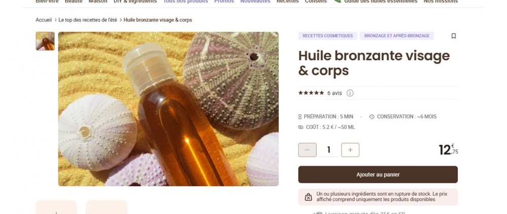 Aroma-Zone nous prévient tout de même : cette huile « bronzante » n’est pas un « soin de protection solaire »…