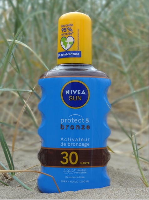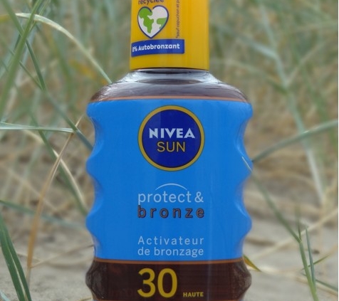 Peut-on réaliser l’étude des solaires de l’été et passer à côté des produits Nivea ? Bien sûr que non ! Au rayon des huiles sèches, Nivea ne reste pas… sec… L’huile qui nous est proposée joue sur les 2 tableaux : protect & bronze… On nous parle d’un activateur de mélanine… on n’en voit pourtant aucune trace dans la liste des ingrédients.1 Passons…