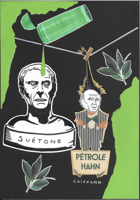 Suétone est un historien du 1er siècle de notre ère, à la production très éclectique, dans la mesure où il s’intéresse tout autant aux hommes de pouvoir qu’aux courtisanes. Dans son œuvre Vies des douze Césars,1 il nous propose une description à la fois physique et moral du grand Jules… César, pour ne pas le nommer. Un portrait au millimètre, au poil près, d’un homme qui souffre d’un manque de poils sur le caillou et qui, pour ce faire, invente la notion de serre-tête végétal. Un homme qui n’a pas de poil dans la main, mais qui chevauche aux côtés de ses hommes et ne fait pas de chichis lorsqu’il s’agit de camper à la dure.