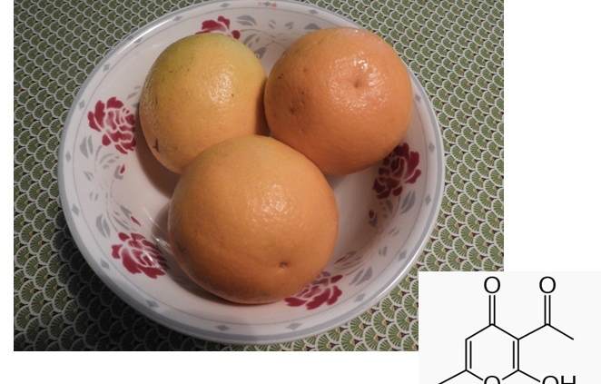 Dans son sketch « Les oranges », Fernand Raynaud se veut pragmatique.1 Son employé zélé, plein de bonne volonté, se propose d’attirer la clientèle à l’aide d’une ardoise sur laquelle on peut lire : « Ici, on vend de belles oranges ». D’argument en argument, l’employé convaincu (plus ou moins) et obéissant (plus que moins) efface un à un chaque mot ; à la fin, il ne va plus rester que le mot « oranges » ! Dans le cas du conservateur que nous nous proposons de présenter aujourd’hui, il en va un peu de même ; cet agent antimicrobien qui protège les agrumes du pourrissement répond au nom chimique de 3-Acétyl-6-méthyl-2H-pyran-2,4(3H)-dione ; il est listé en Annexe V du Règlement (CE) N°1223/2009.2 Il est retrouvé dans un grand nombre de cosmétiques, aussi bien biologiques que conventionnels. Lorsque l’on étudie de près son curriculum vitae, on constate qu’il y a peu de chose à en dire et… c’est plutôt une bonne chose !