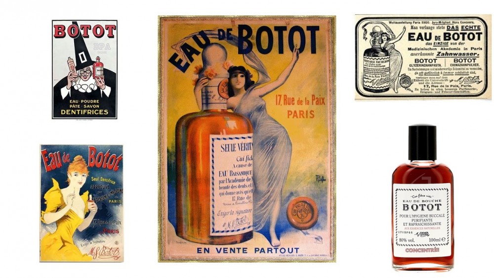L’eau de Botot fut fabriquée pendant dans années dans une usine à Levallois-Perret. Dans les années 1900, elle est présentée comme « le seul dentifrice approuvé par l’académie de médecine de Paris ». La forme liquide constitue alors une forme galénique en vogue, tout comme le savon (une forme qui n’existe plus de nos jours) ou la poudre (une forme dont il n’existe que peu de représentants actuellement).