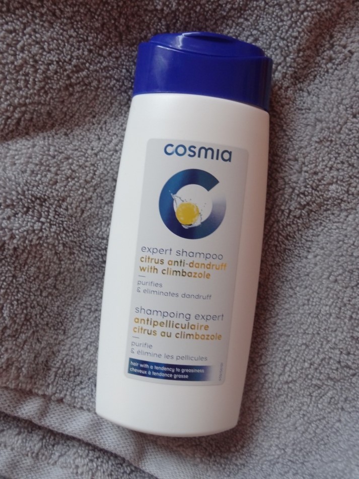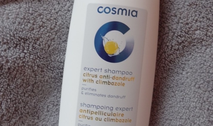 Cosmia shampooing expert antipelliculaire citrus au climbazole : Aqua, sodium laureth sulfate, cocamidopropyl betaine, sodium chloride, PEG-7 glyceryl cocoate, decyl glucoside, climbazole, parfum, butylphenyl methylpropional, limonene, linalool, citric acid, styrene/acrylates copolymer, glycol distearate, laureth-4, glycerin, lactic acid, polyquaternium-7, propylene glycol, rosmarinus officinalis extract, potassium sorbate, CI 19140, CI 42090, sodium benzoate.
