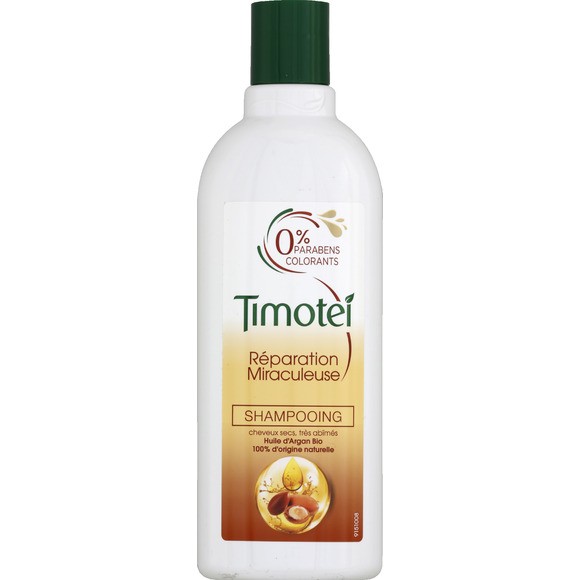 Timotei shampooing à l’huile d’argan : Aqua, Sodium laureth sulfate, Cocamidopropyl betaine, Sodium chloride, Glycerin, Argania spinosa kernel oil, Carbomer, Citric acid, Cocos nucifera oil, Dimethiconol, Disodium EDTA, DMDM hydantoin, Gluconolactone, Glycol distearate, Guar hydroxypropyltrimonium chloride, Parfum, PEG-45m, Phenoxyethanol, Prunus amygdalus dulcis oil, selaginella lepidophylla extract, silica, sodium benzoate, sodium hydroxide, TEA-dodecylbenzenesulfonate, TEA-sulfate, Trehalose, Benzyl alcohol, Butylphenyl methylpropional, Hexyl cinnamal, Limonene.