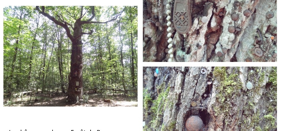 Un peu partout en France, il est possible de trouver des chênes aux clous qui permettent de conjurer la furonculose et plus généralement la maladie. Le chêne de la forêt de Bonnoeuvre, en Loire-Atlantique, est de ceux-là. Ce chêne vénérable, qui a vu plus d’un pèlerin faire 7 fois le tour de sa circonférence et qui est piqué dans son écorce par une multitude de clous, se dresse au milieu d’une forêt rafraichissante, à arpenter par temps de canicule. S’il soulage en théorie des clous, il ne peut rien en revanche contre les morsures de tiques qui pouvent survenir même lorsque l’on ne quitte pas les sentiers balisés (par parenthèse il serait bien de rafraîchir le balisage des sentiers afin d’éviter au randonneur de tourner sur lui-même un peu trop longtemps !). Promenade recommandée, mais avec un tire-tique de secours à portée de main !