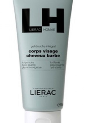 Gel douche intégral Homme Lierac (corps, visage, cheveux, barbe) : AQUA / WATER / EAU. DECYL GLUCOSIDE. GLYCERIN. SODIUM METHYL COCOYL TAURATE. PARFUM / FRAGRANCE. GUAR HYDROXYPROPYLTRIMONIUM CHLORIDE. SODIUM CHLORIDE. CITRIC ACID. COCONUT ACID. SODIUM BENZOATE. ACACIA CONCINNA FRUIT EXTRACT. COCO-GLUCOSIDE. GLYCERYL OLEATE. MALTODEXTRIN. GYPSOPHILA PANICULATA ROOT EXTRACT. TULIPA GESNERIANA FLOWER EXTRACT. SAPONINS. POTASSIUM SORBATE. SORBIC ACID. TOCOPHEROL. HYDROGENATED VEGETABLE GLYCERIDES CITRATE.