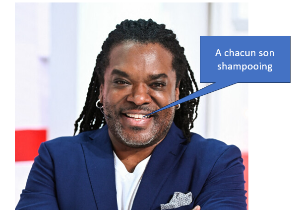 Le shampooing pour hommes est un shampooing conditionné dans un flacon bleu ou vert (pour les sportifs). Il fait tout… Il lave « les cheveux, le corps, le tapis, le chien, la bagnole »… et en plus… il est très bon marché !
