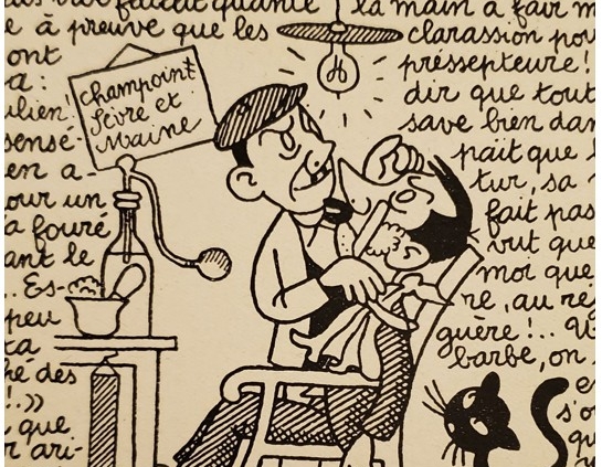 Dans la chronique intitulée Convalescence, Julien Piédalu réalise sa première sortie après avoir eu « une pointe de conjexion » ! Régime sec… au « Vitèle » imposé par le docteur ! L’idée est d’aller chez le coiffeur en passant par le bistrot… Julien avoue : « J’ai mit un bou de tant pour arrivé che le frater pour qu’il me grate la couaine. » Les verres se succédant à un rythme effréné. Une fois chez le coiffeur, rasage au coupe-chou. Pour rendre service, Julien se met à la déclaration d’impôts de son hôte, Grégoir. « La déclarassion pour le préssepteure » c’est pas rien à rédiger ! Julien est connu dans tout le pays « Fot dir que tout le mond save bien dans le paït que les écritur, sa me fait pas peur, vu que s’est moi que je baliait le burot des ségrétaire au réjimant pendant la drolle de guère : » Une fois la barbe faite donc… voilà notre Julien stylo en main. De quoi en perdre son latin avec toutes ces informations à donner (je t’en pose des questions ?). Aussi, lorsque la bouteille d’encre se renverse sur le document, voilà Grégoir ravi qui s’écrie : « Comesa il pouron pas lir et y seront bien be atrapé ! »