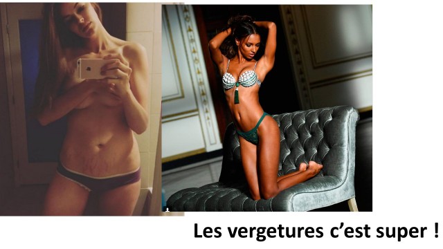 En 2015, la top model australienne Robyn Lawley fait part, sur Facebook, de sa joie d’être maman et revendique le fait d’en garder des séquelles sous forme de vergetures : « Nous sommes en 2015, nous devons de toute urgence faire en sorte que les femmes du monde se sentent libres dans leurs corps et dans les esprits. […] J’aime ma fille, j’aime également mes droits », conclut-elle (http://www.marieclaire.fr/,robyn-lawley-mannequin-vergetures-post-grossesse-tabous,783121.asp.)