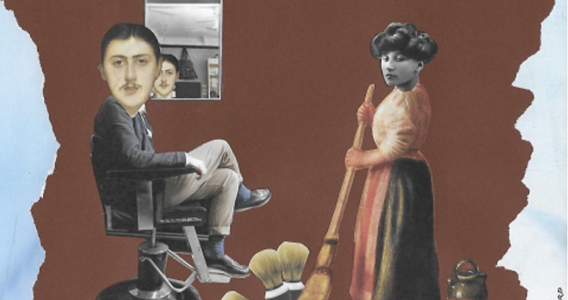 Un immense merci à Jean-Claude A. Coiffard, poète et plasticien, pour sa mise en scène du jour, réunissant Proust et Colette dans un Barber shop !