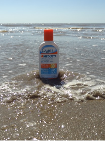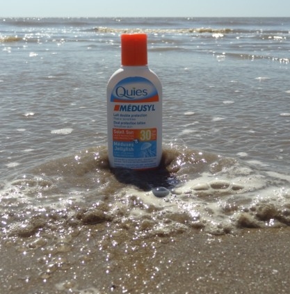 Sur le marché français, on trouve le PPS Médusyl SPF 30 qui se présente à la fois comme un produit anti-piqûres et comme un produit photo-protecteur. Ne disposant pas de méduses, nous ne donnerons pas notre avis sur cet aspect de cette formule. Précisons tout de même que l’excipient hydrophobe est bien présent (le cyclopentasiloxane figure en tête de la liste des ingrédients), glycosaminoglycanes, calcium et magnésium aussi.