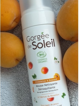 Mousse nettoyante et démaquillante Gorgée de Soleil : Aqua, aloe barbadensis leaf juice, sodium cocoyl glutamate, glycerin, cocamidopropyl betaine, hamamelis virginiana leaf water, coco-glucoside, prunus armeniacafruit extract, citrus medica vulgaris fruit extract, citric acid, sodium chloride, benzyl alcohol, glyceryl oleate, parfum, dehydroacetic acid, potassium sorbate, sodium benzoate.