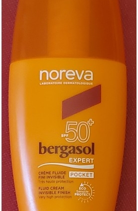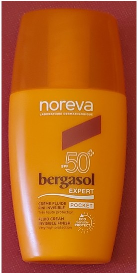 Noreva Bergasol pocket crème fluide fini invisible SPF 50+ : AQUA (WATER), DIBUTYL ADIPATE, ETHYLHEXYL METHOXYCINNAMATE, DIETHYLAMINO HYDROXYBENZOYL HEXYL BENZOATE, PHENYLBENZIMIDAZOLE SULFONIC ACID, BIS-ETHYLHEXYLOXYPHENOL METHOXYPHENYL TRIAZINE, METHYL GLUCOSE DIOLEATE, TRIACONTANYL PVP, GLYCERIN, BALANITES ROXBURGHII SEED OIL, OENOTHERA BIENNIS (EVENING PRIMROSE) OIL, NIACINAMIDE, LECITHIN, ACETYL HEXAPEPTIDE-1, POLYGONUM AVICULARE EXTRACT, TOCOPHEROL, SODIUM HYDROXIDE, ACRYLATES COPOLYMER, PARFUM (FRAGRANCE), ISOPROPYL PALMITATE, ACRYLATES/BEHENETH-25 METHACRYLATE COPOLYMER, 1,2-HEXANEDIOL, ETHYLHEXYLGLYCERIN, CHLORPHENESIN, DISODIUM EDTA, POTASSIUM SORBATE, BHT, SODIUM BENZOATE.