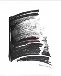 Nous avons mis au défi l’un de nos illustrateurs : rendre un hommage à Soulages avec pour seuls outils un mascara et un eye liner. Défi réussi ! Un grand merci à Jean-Claude Coiffard, poète et plasticien, pour s’être prêté à cet exercice à la fois artistique et cosmétique.