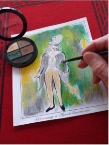 Aujourd’hui, Jean-Claude A. Coiffard, poète et plasticien, nous propose cet hommage à Marie Laurencin réalisé à l’aide de fards à paupières.
