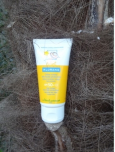 Crème solaire Klorane enfant 50+, la crème qui sent la pêche et donne la pêche !