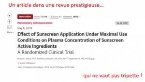 Oyez oyez, professionnel de santé ou simple consommateur de produits de protection solaire, la prestigieuse revue JAMA vient de publier une nouvelle fracassante : il est possible de retrouver des traces de filtres UV (avobenzone, oxybenzone, octocrylene et ecamsule) dans la circulation sanguine après application de produit solaire sous forme d’émulsion dans des conditions d’application très maximalisées.1 […]