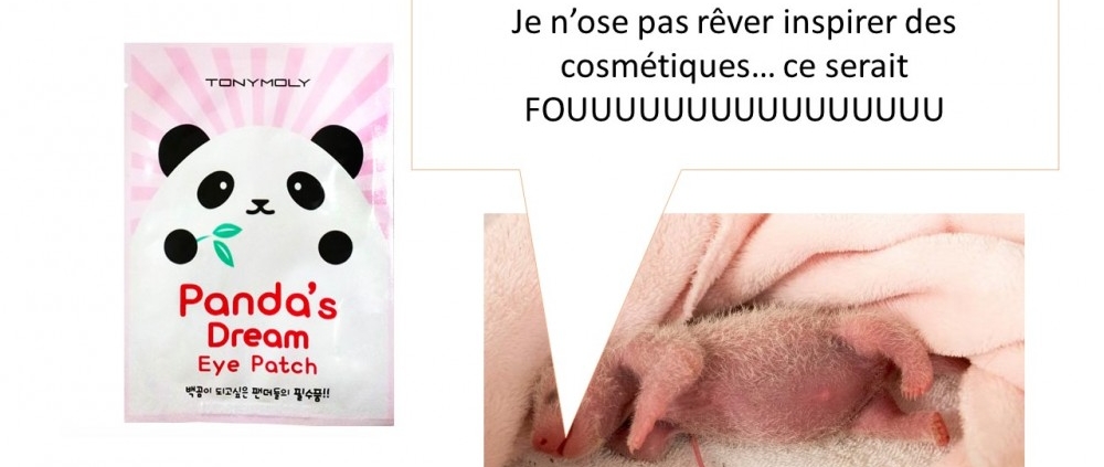 Le masque Panda’s dream (patchs contour des yeux anti-cernes et décongestionnants) et son panda tout en rondeur ne manqueront pas d’attirer l’attention des panda-maniaques. Un masque anti-cernes qui évite de ressembler à un panda, tout en affichant sa tendresse pour cette catégorie d’animaux qui exhibe des cernes XXL, cela ne manque pas de culot !