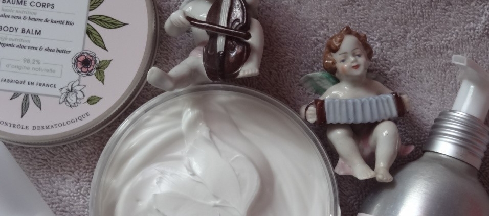 Côté hydratation, le baume corps dans son conditionnement à large ouverture constitue une tentation à plonger la main, sans restriction, dedans. Les adeptes de l’hygiène à tout crin y verront à redire, les adeptes des cosmétiques-plaisir se contenteront de hausser les épaules et de se tartiner le corps avec une pâte particulièrement fondante. L’émulsion à l’origine de notre émoi est riche en corps gras (beurre de karité, huile de tournesol, alcool béhénique)9,10 et en glycérine.11 Les deux moteurs de l’émollience (effet anti-déshydratant, effet hydratant) sont bien présents. Le lait corps, qui joue la même partition, mais s’est glissé dans un flacon-pompe offre le même type de prestation.
