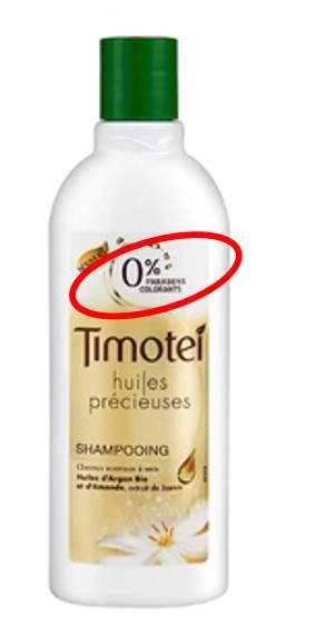 Sur l’emballage des produits capillaires Timotei, c’est la mention « 0% parabens, silicones, colorants » qui nous accueille. Selon les produits, on lira 0 % parabens, 0 % parabens, colorants ou 0 % parabens, silicones. Pourtant, on trouve des silicones dans la plupart des formules. On trouve également des colorants dans certaines références ! Quel casse-tête pour le service réglementaire qui doit jongler avec les mentions, avec les compositions !