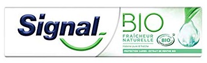 Les dentifrices Bio de marque Signal possèdent des formules bien pensées. Chacun pourra donc choisir sa version préférée. Pas de gagnant, aujourd’hui, entre produit bio ou produit conventionnel.