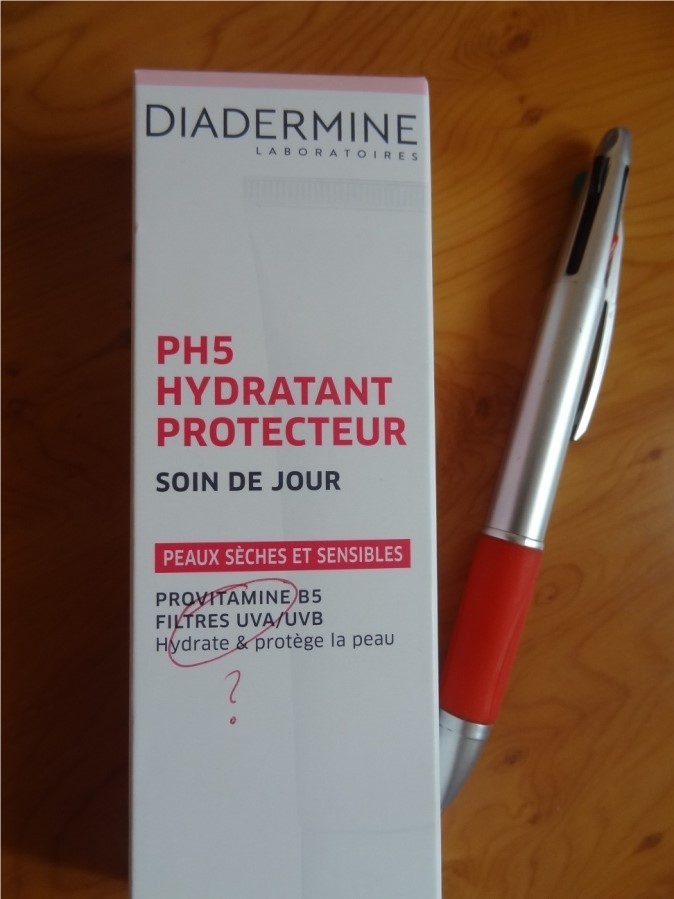 Au rayon des crèmes de jour, la marque Diadermine est plutôt bien implantée. Pour hydrater les peaux sèches et sensibles, la gamme « pH5 hydratant protecteur » propose une crème à la provitamine B5 et aux « filtres UVA/UVB ».