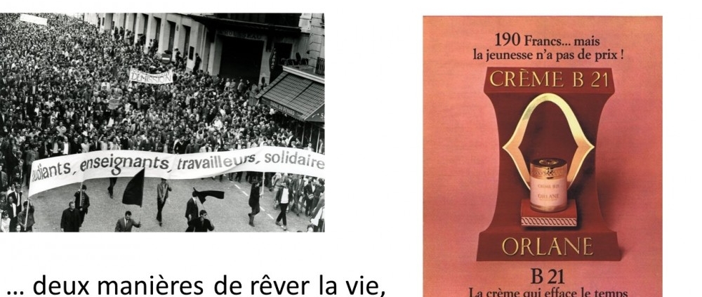 « la société de consommation », une partie de la population ne se retrouve pas dans la société telle qu‘elle est alors. Les plus poètes rêvent de plage sous les pavés (la notion de protection solaire n’est pas encore un thème d’actualité), les plus terre à terre, d’augmentation de salaire. Tous se retrouvent sous le drapeau rouge afin de faire plier le gouvernement en place.