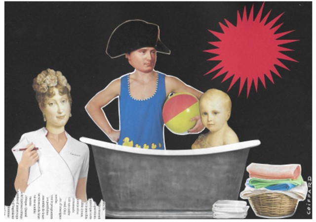 Un grand merci à Jean-Claude A. Coiffard, poète et plasticien, pour sa manière non conventionnelle, de nous montrer Napoléon, l’impératrice Marie-Louise et le roi de Rome, au bain !
