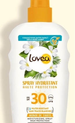 Lovea est une marque bien connue des vacanciers, amateurs de monoï. Attention, toutefois, ce monoï, résultat de la macération d’une fleur dans de l’huile de coco, n’exerce aucun effet photoprotecteur.