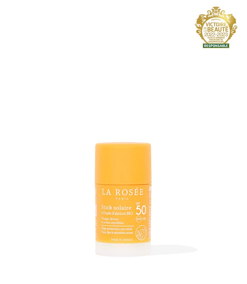 Stick solaire La Rosée SPF 50 : Coco-Caprylate/Caprate, Euphorbia Cerifera (Candelilla) Wax, Octyldodecanol, Diethylamino Hydroxybenzoyl Hexyl Benzoate, Bis-Ethylhexyloxyphenol Methoxyphenyl Triazine, Copernicia Cerifera (Carnauba) Wax, Caprylic/Capric, Ethylhexyl Triazone, Zea Mays (Corn) Starch, Theobroma Cacao (Cocoa) Seed Butter, Parfum (Fragrance), Prunus Armeniaca (Apricot) Kernel Oil, Tocopherol, Helianthus Annuus (Sunflower) Seed Oil, Triticum Vulgare (Wheat) Germ Oil.