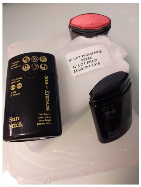 Ah, au fait ces sticks renferment en ingrédient majoritaire une matière première dont le nom INCI est « cera microcristallina ». En toute transparence, il nous semble utile de préciser à ceux qui ne le savent pas encore que c’est de la paraffine qui se cache sous ce joli nom.5 Nous, cela ne nous dérange pas. Mais affirmer l’absence de dérivés de pétrole et mettre de la paraffine en tête de liste des ingrédients c’est un peu mensonger, non ?